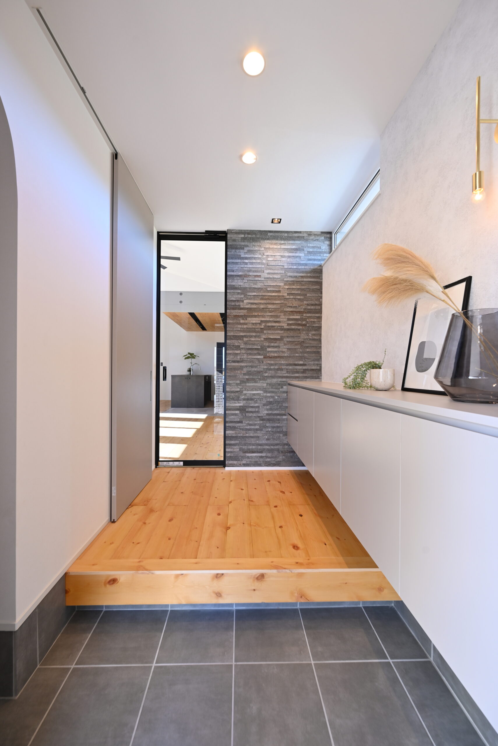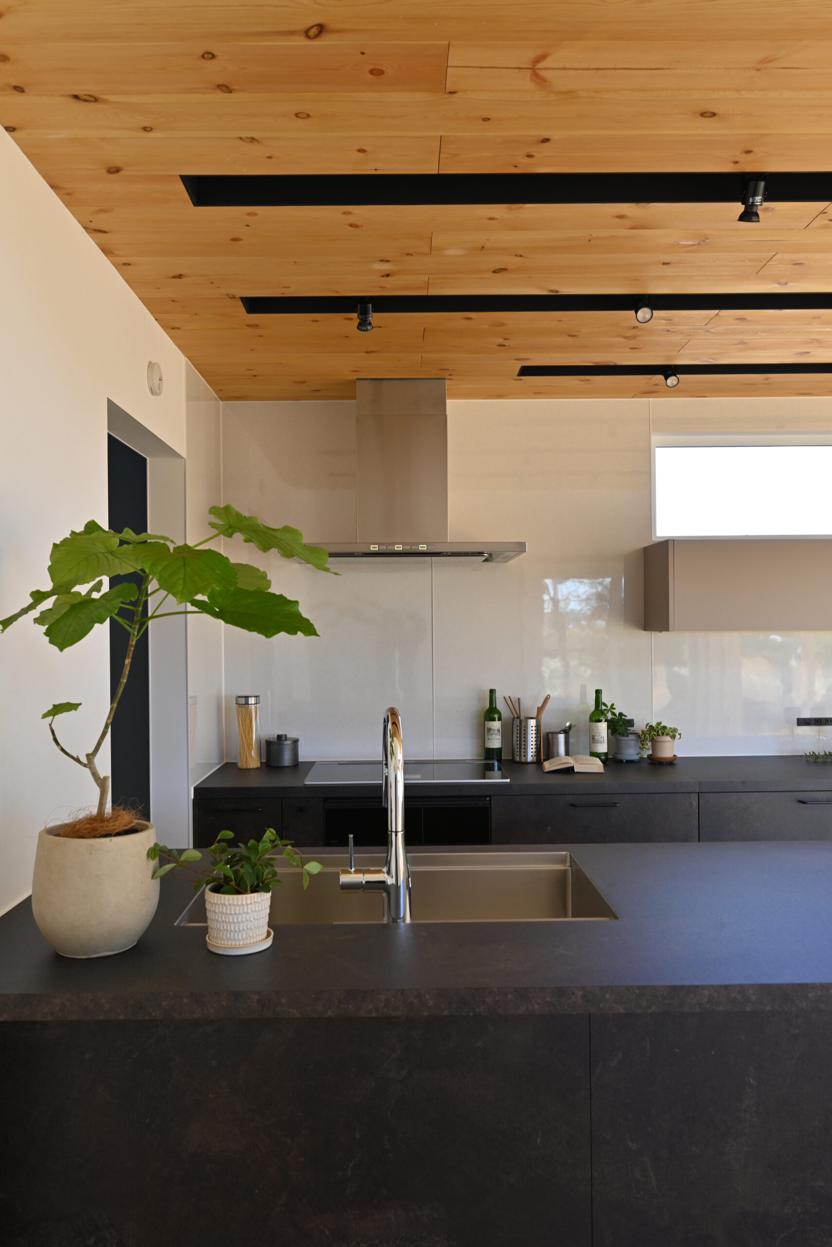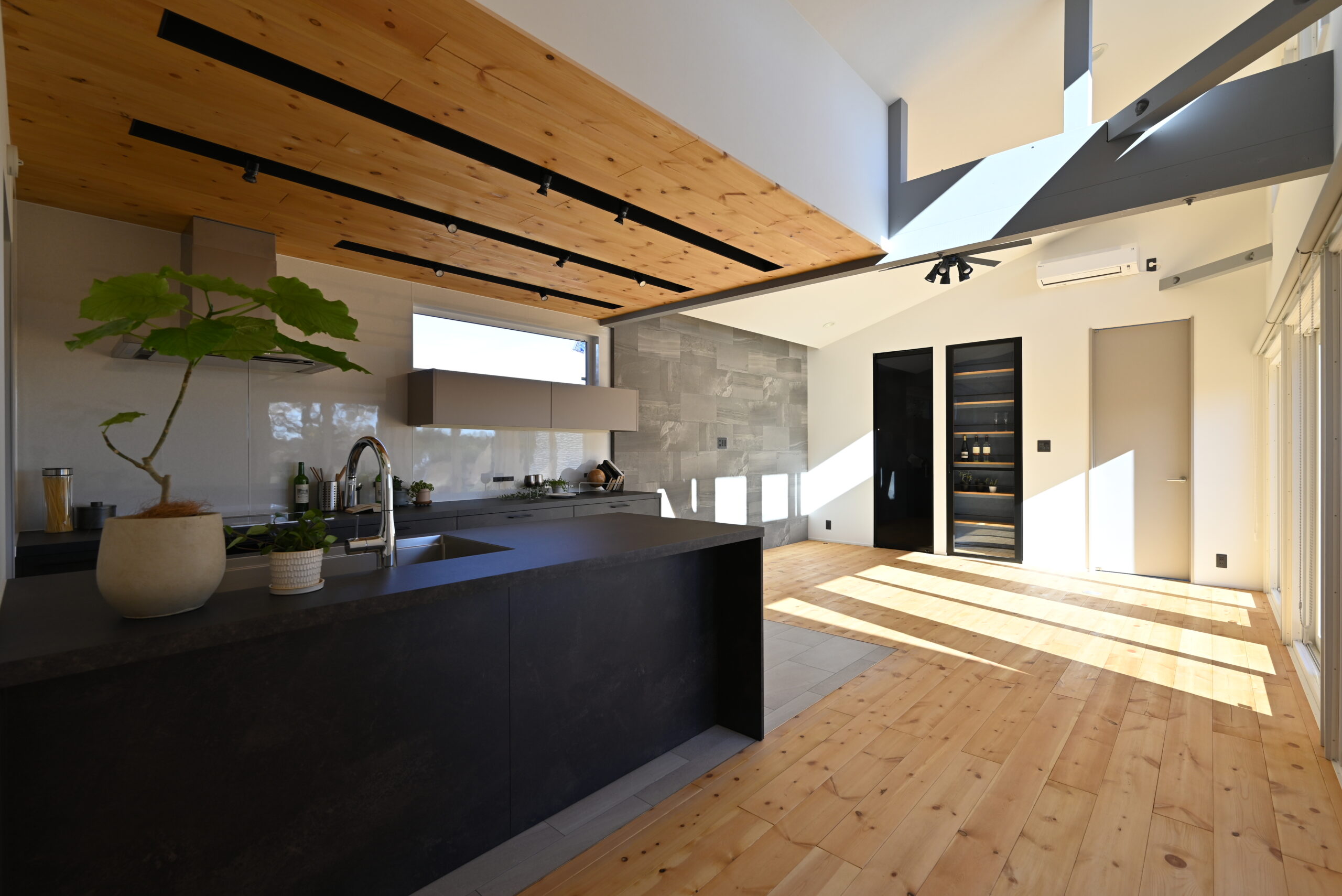 直線的なデザインに、木の素材感をプラスしたバランスのいい空間。 家事や生活がスムーズに流れる、使いやすいレイアウトです。 気取らず、今のライフスタイルにフィットする住まいに仕上げました。