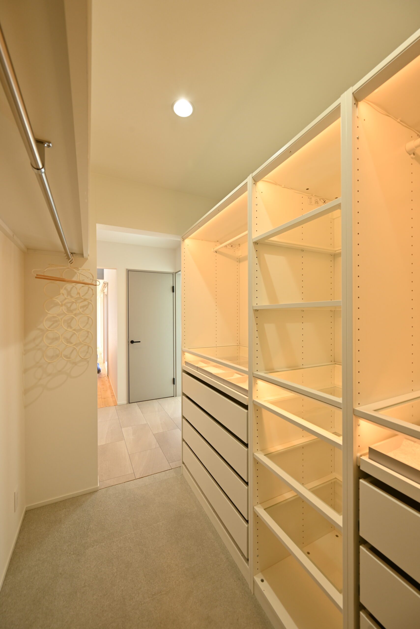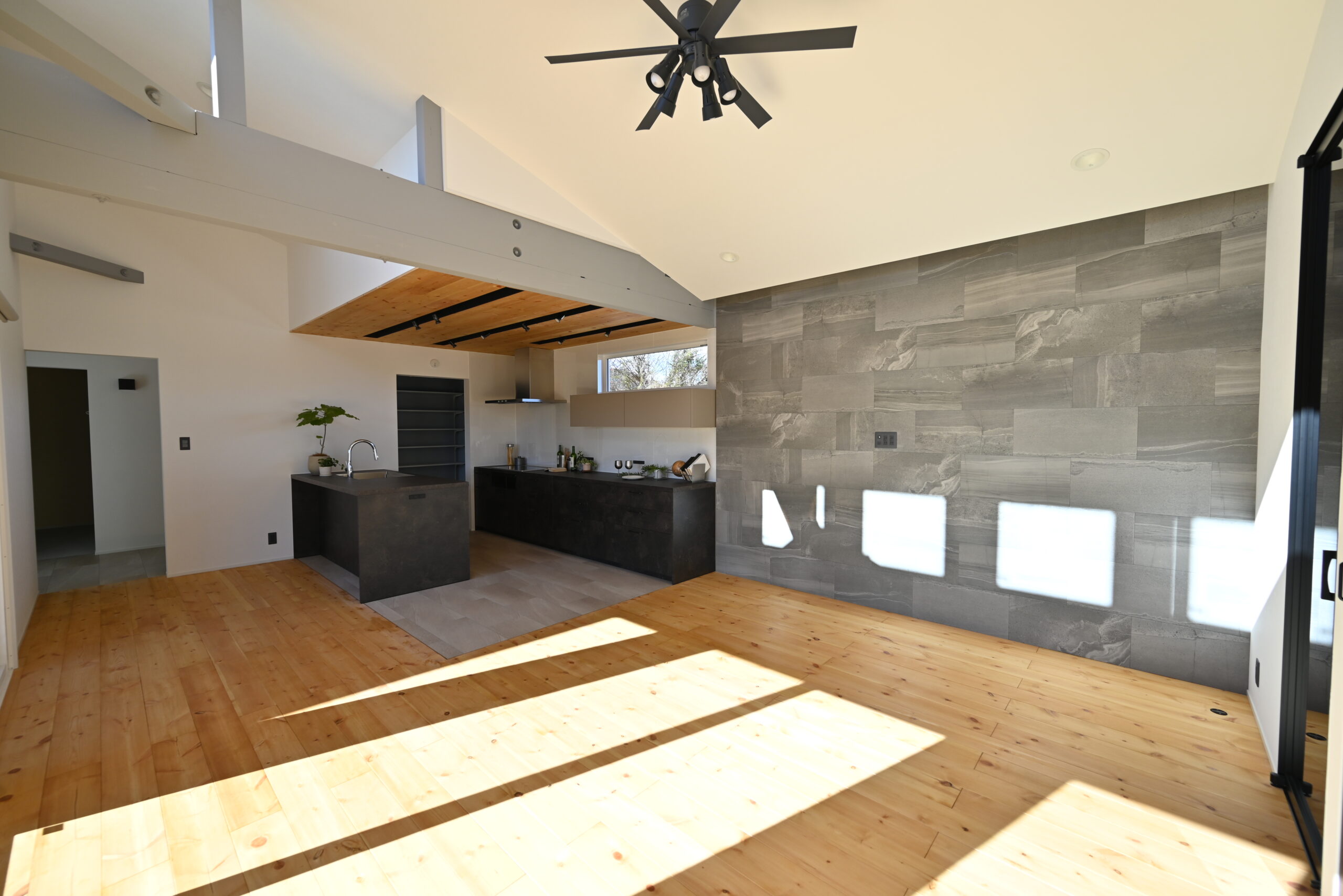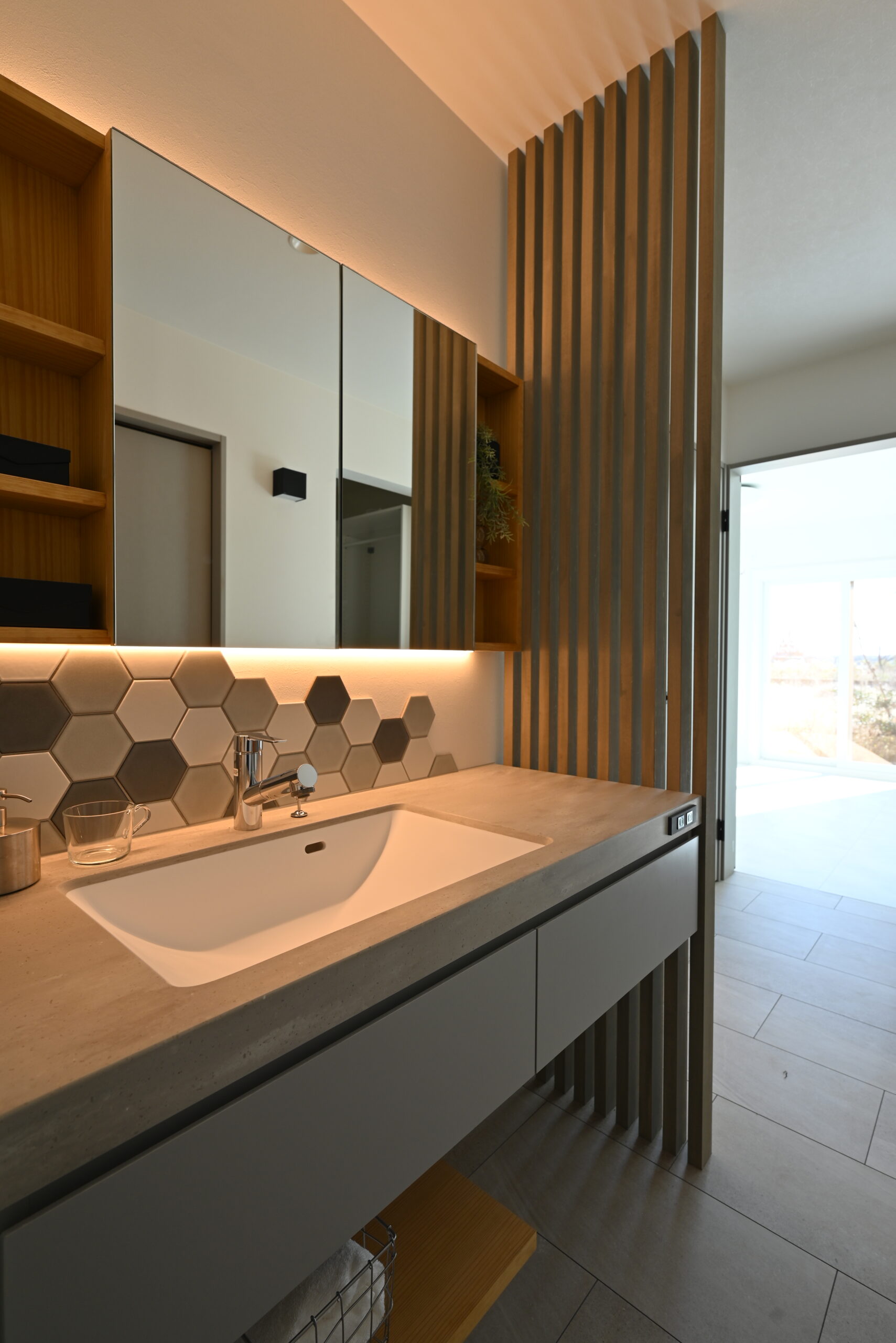 直線的なデザインに、木の素材感をプラスしたバランスのいい空間。 家事や生活がスムーズに流れる、使いやすいレイアウトです。 気取らず、今のライフスタイルにフィットする住まいに仕上げました。