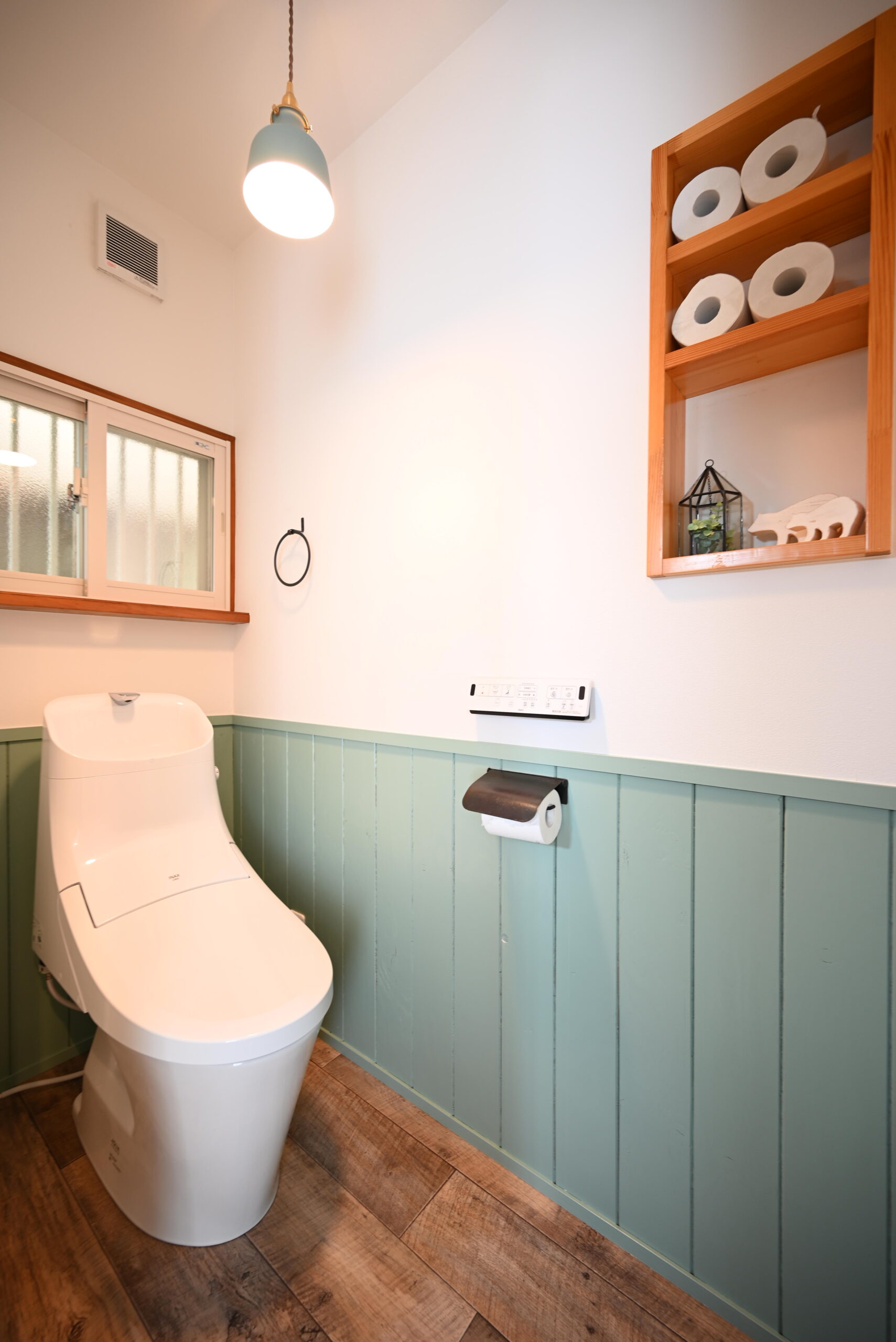 毎日使う場所に、お気に入りのカラーと素材を詰め込みました。ミントグリーンの腰壁が可愛いトイレや、モザイクタイルをあしらった洗面台など、細部までこだわったデザインに。随所にアクセントカラーを取り入れ、機能性だけでなく、自分らしさを表現した住まいに生まれ変わりました。